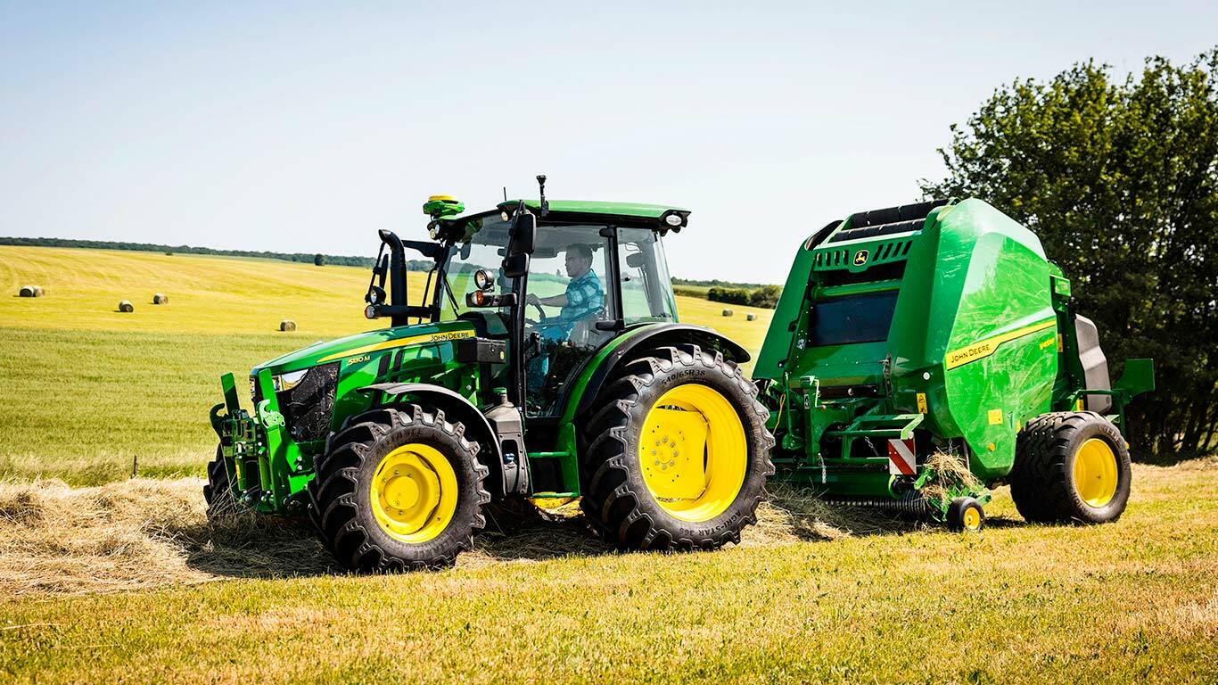 Vi introduserer 5M, alt-i-ett-traktoren for de mange ulike kravene i moderne jordbruk. 5M er kompakt, lett og med muskler til overs. Den kombinerer fremragende smidighet med ekspertlasterytelse. Den brede førerhytta gir uovertruffen sikt, supplert med fingertuppskift for uanstrengte overganger på veien. For eksepsjonell ytelse i åkeren er Powr8™ EcoShift -transmisjonen til M 5-erne utstyrt med åtte powershift-gir for jevn kraft, mens AutoTrac sørger for minimal overlapping for maks effektivitet.